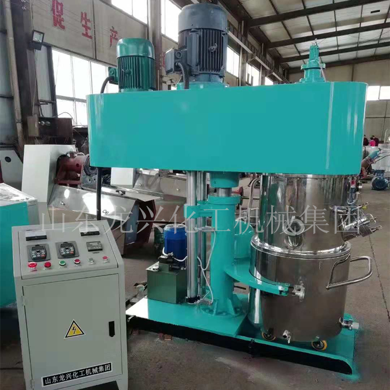雙行星動力混合機是一種無死點高低速結合、強力分散混合攪拌設備,適用于化工、輕工、食品、制藥、建材、農藥等行業的固—液、液—液相物料的混合、反應、溶解、分散等工藝,如粘膠劑、硅酮密封膠、聚氨酯膠、丙稀酸膠、汽車密封膠、及封裝膠、軟膏及漿糊狀物料、潤滑脂及油漆、膏狀化妝品、油墨及顏料及乳劑、膏狀食品及添加劑等的制作這種混合機可以與各種生產形式同時進行,單速、雙速、變速、三種速度可供選擇,滿足各種工藝要求。強力分散機釜內有三根不同形式的攪拌器,其中一個攪拌器在繞釜體軸線轉動,其余兩個攪拌裝置又以不同的轉速繞自身軸線高速自轉,使物料在釜內作復雜的運動,受到強烈的剪切和搓合。設備內有“山”形刮底刮壁刀繞釜體軸線轉動,將粘在壁上和底部的原料刮出參與混合,使其效果更為理想。設備密封性好,可抽真空,具有良好的排氣除泡效果。設備缸蓋可液壓升降,缸體可自由移動,操作十分方便。攪拌器的形式,根據物料要求可為多層槳葉式、框式、蝴蝶式、外輪式等。